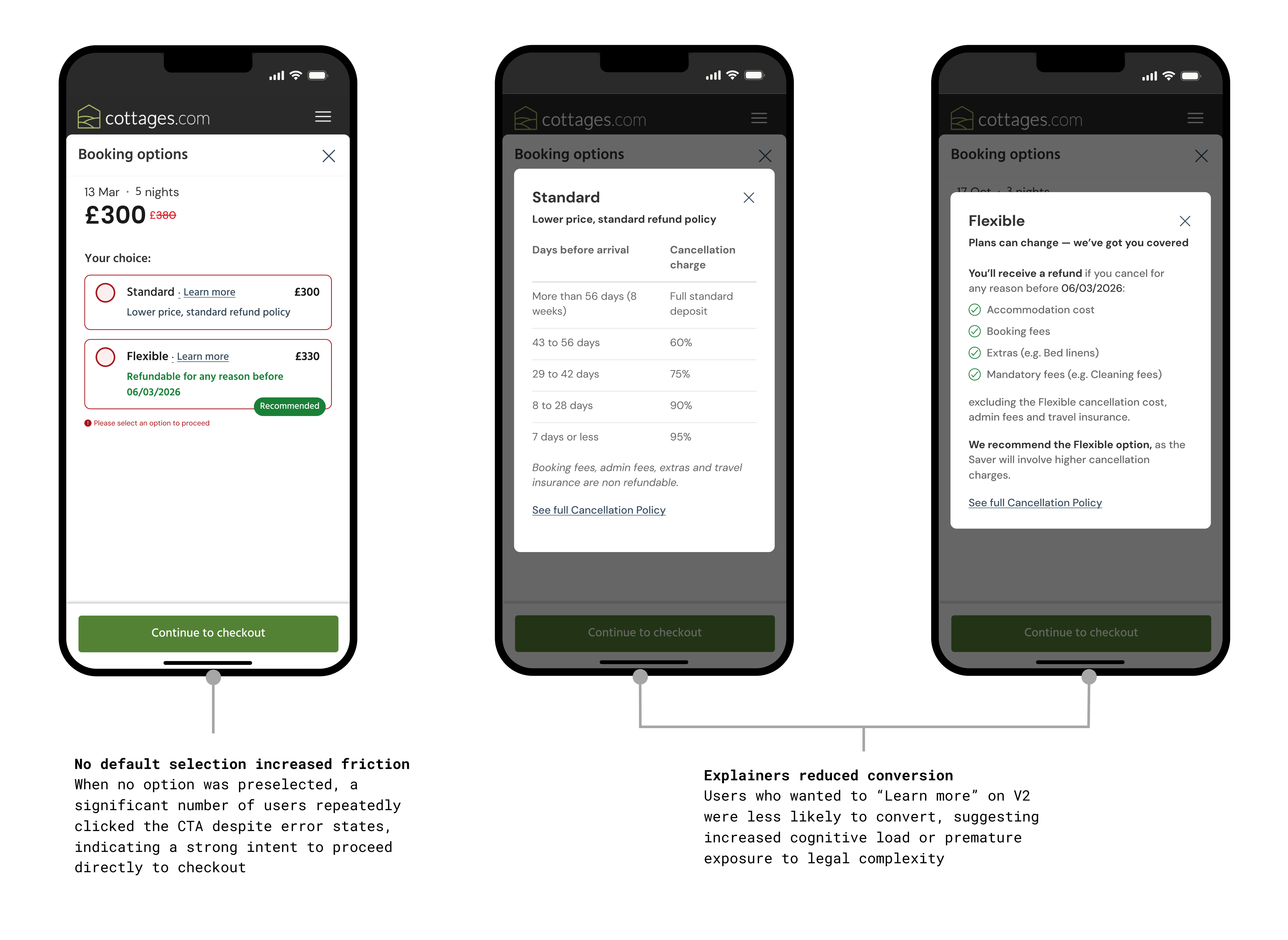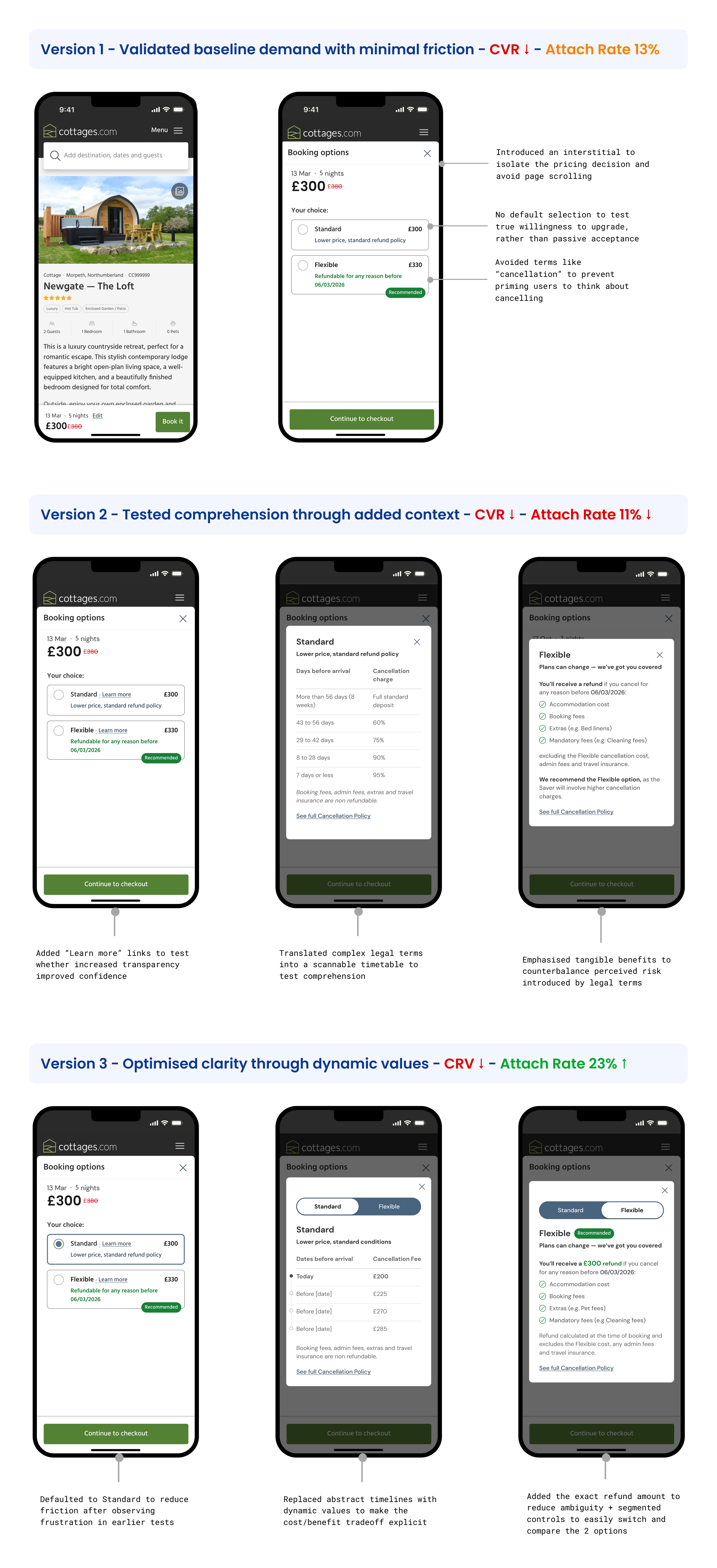 • I led the design direction and strategic framing for Flexible Cancellations, operating at product-area level and aligning with designers across the booking journey to ensure a consistent end-to-end experience.