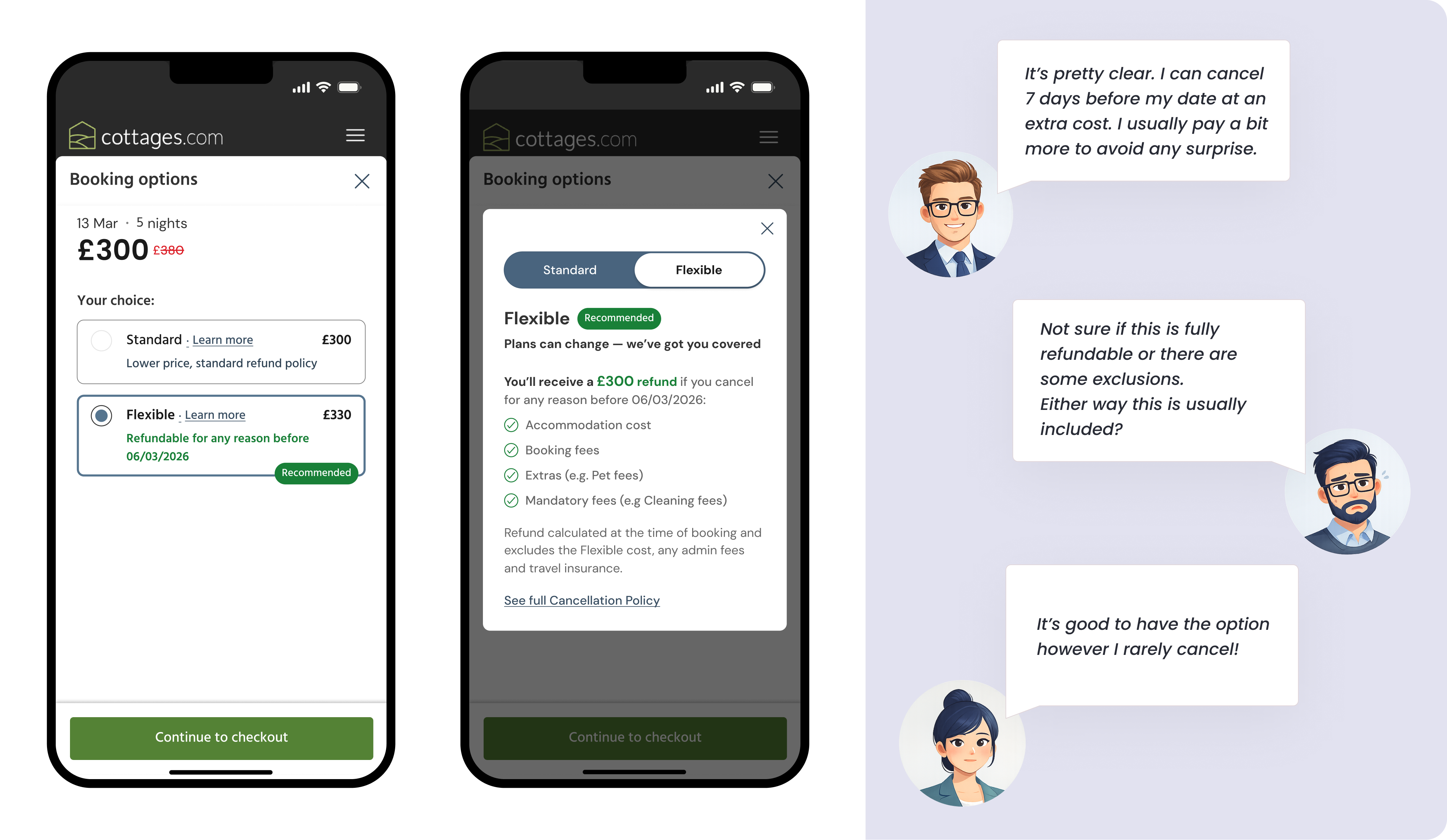 Increase booking confidence by offering a paid Flexible Cancellation option, while growing overall revenue per visitor without causing disproportionate conversion loss.